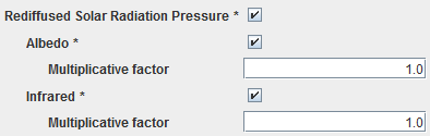 The user will just have to select or not if albedo and/or infrared component will be taken into account and, if yes, a multiplicative coefficient. If we select this option, we will need, of course, Sun ephemeris (choice displayed at the end of the tab).