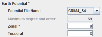 First, of course, the user has to select a potential model (it is mandatory). To do it, the user will simply select the name of the model then the zonal and tesseral degrees and orders. Note that the tesseral order may not be lower than the zonal degree.