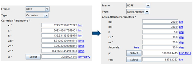 The widget used to entry initial orbit parameters proposes a lot of different frames an type of parameters but also allows executing conversions. It is very interesting for example if you want to see quickly at which altitude is your perigee when you initially get Cartesian parameters!