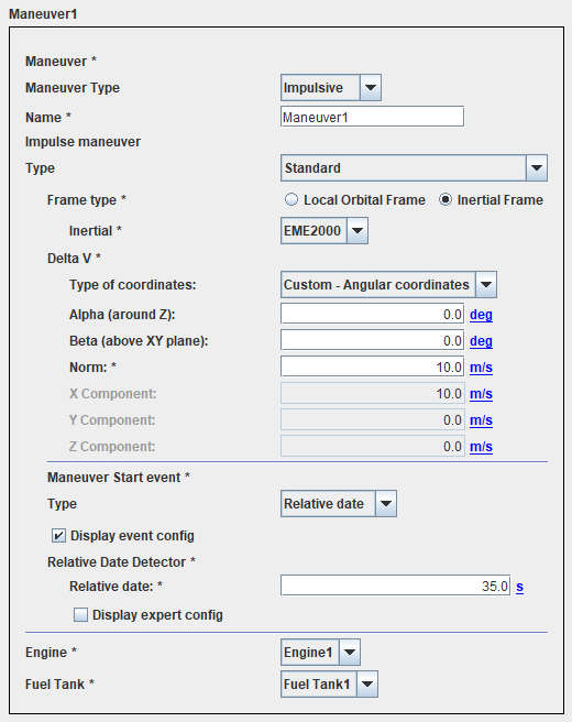 • The maneuver components (Cartesian coordinates or a norm and two angles)