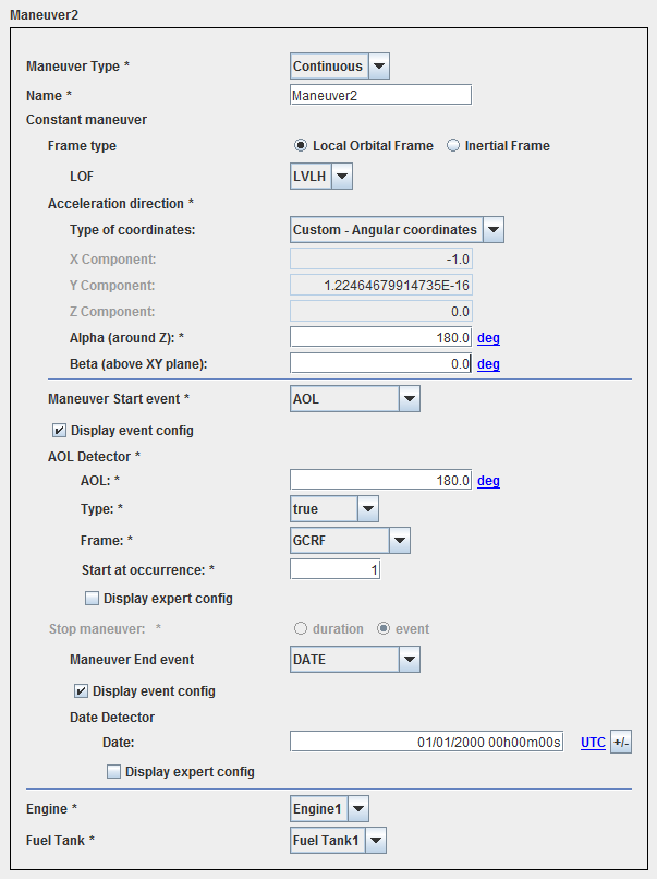 • The orbital event that will trigger the maneuver (be careful that the orbital event is not indefinite as AOL when inclination is equal to zero)