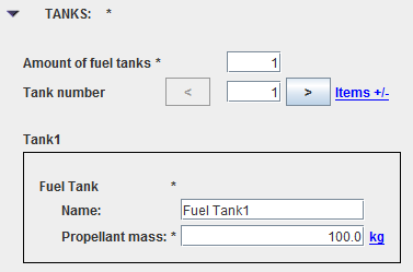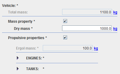 This item is very simple as the user has only to enter the dry mass value (for ergols mass, see Propulsive properties).
