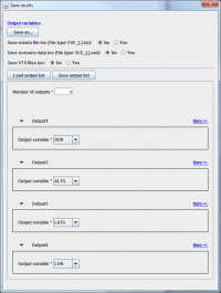 - “Save results” button: in that case, a new window will appear where it will be possible to define which output data (to be selected in a list) will be stored in an ephemeris file but also, if the user wants to do it, in an event file or [VTS] files; it is also possible to save the actual context in a XML file (same as for “Save context”).